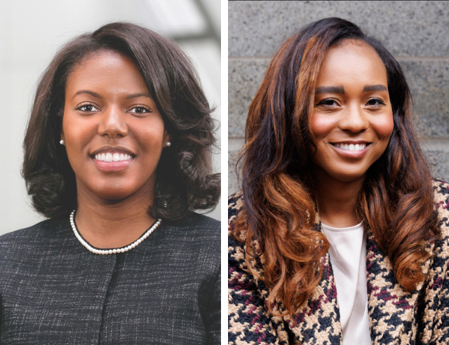In February, Avana Epperson-Temple ’15 (left), then president of the Massachusetts Black Lawyers Association, and Tara Dunn Jackson ’17, president of the Massachusetts Black Women Attorneys, were honored by the Harvard Generational African American Students Association and other groups for their exceptional leadership in advancing diversity and inclusion within the legal field at a screening of the award-winning documentary Becoming Black Lawyers.